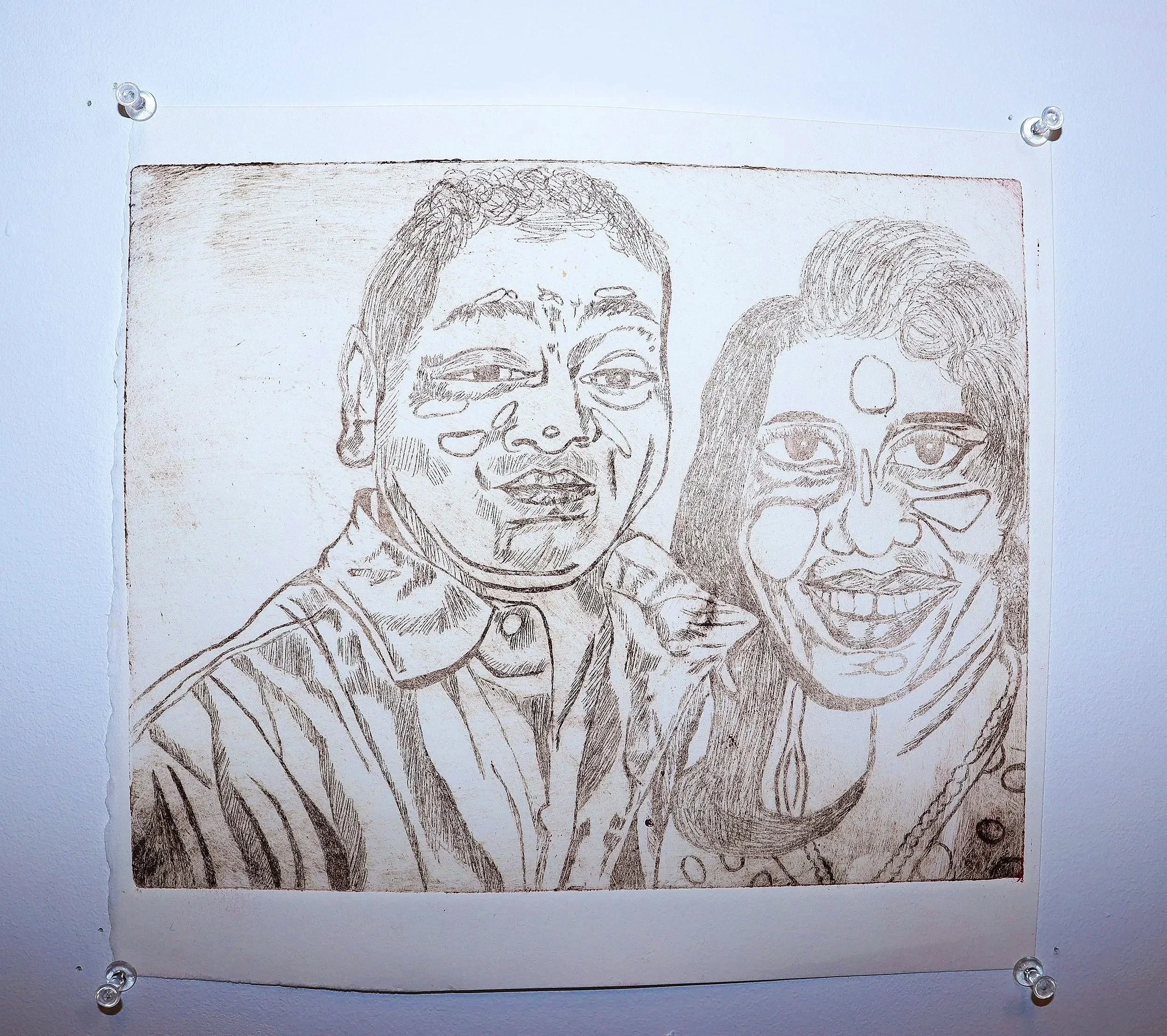 Mommy and Daddy at Christin’s Wedding in ‘07, 2024, Etching print on printmaking paper, 8 x 7 inches