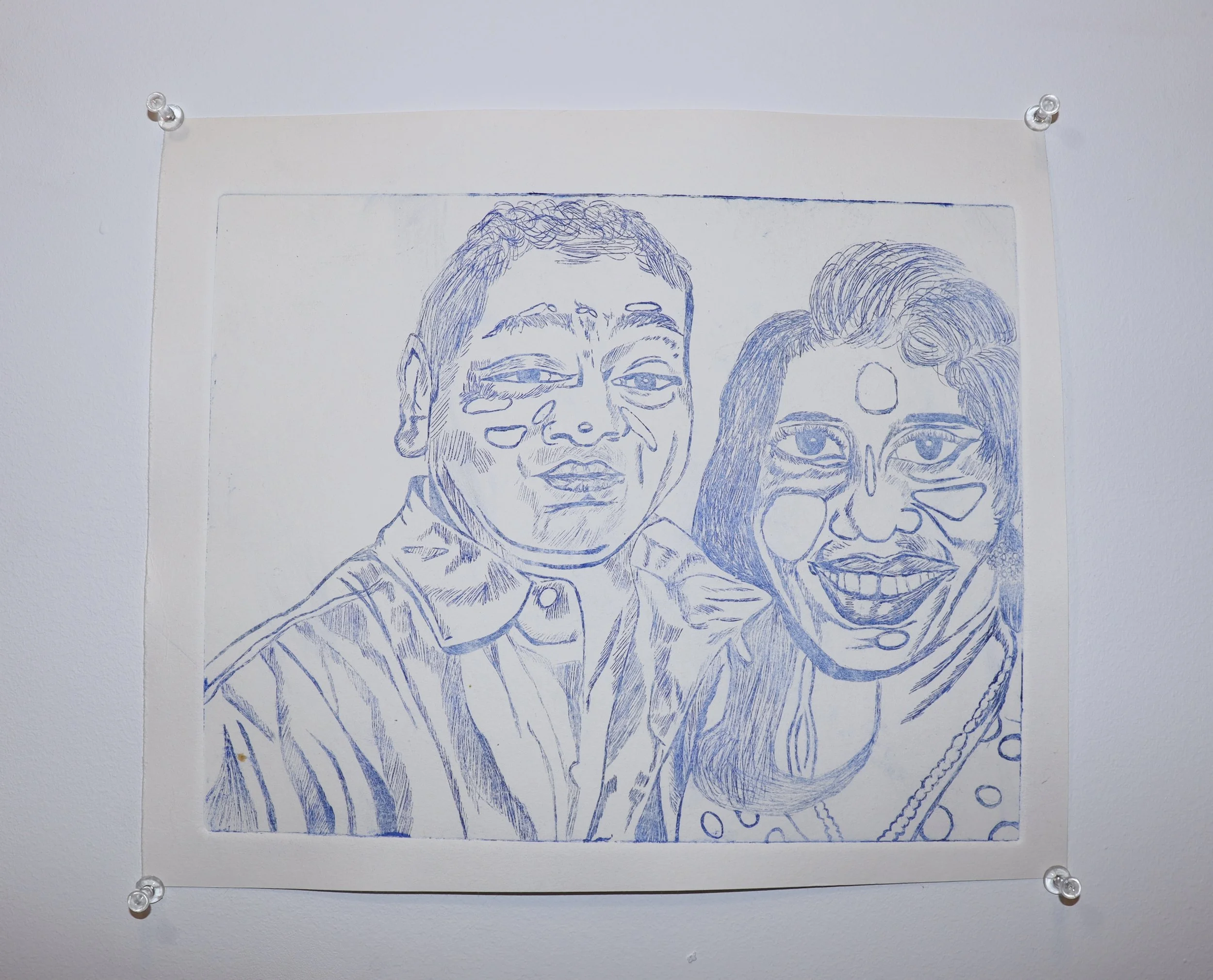Mommy and Daddy at Christin’s Wedding in ‘07, 2024, Etching print on printmaking paper, 8 x 7 inches